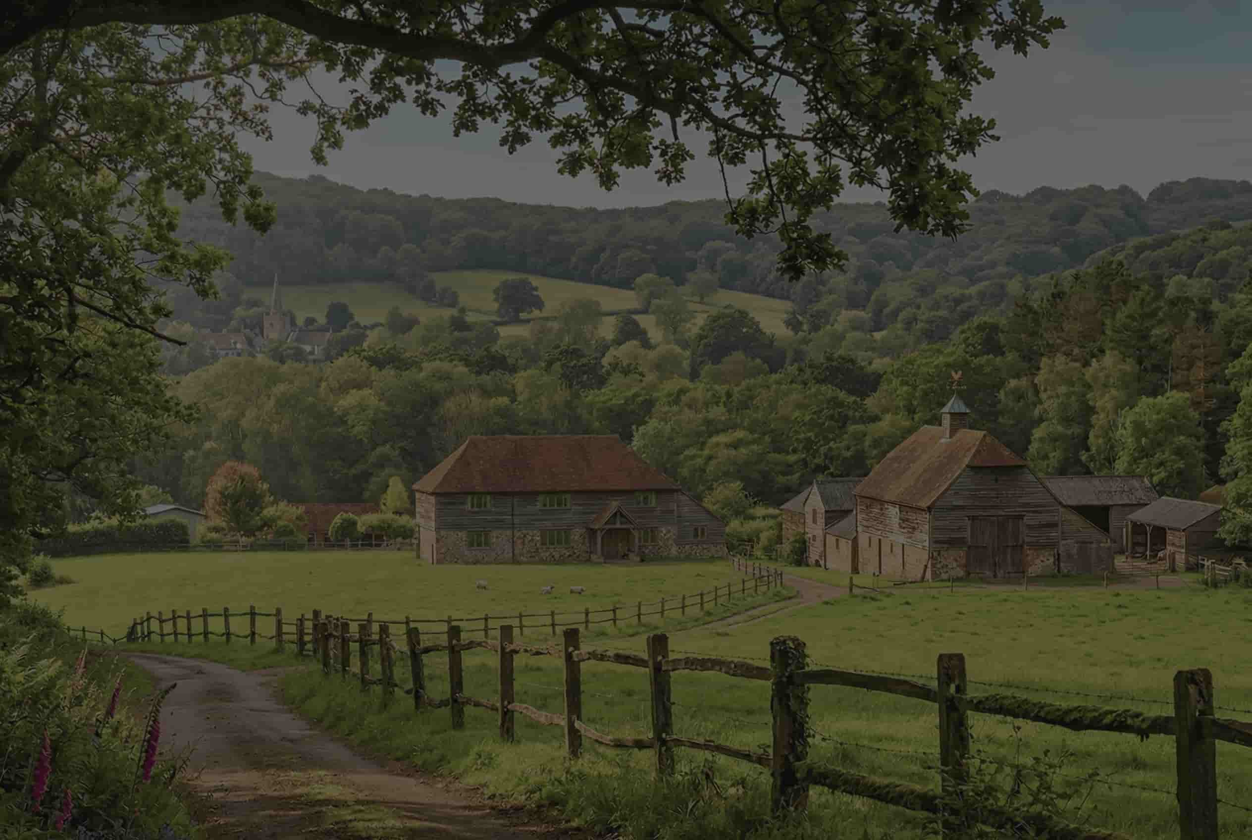 Hawksfold sits quietly on the Surrey-Sussex border, a few miles from Haslemere, at the point where the South Downs begin to soften into the Weald. The estate covers around fifty acres — woodland, meadow, traditional barns, and the upper tributaries of the Rivers Lod and Rother threading through the lower ground. It is the kind of place you feel before you quite understand it.